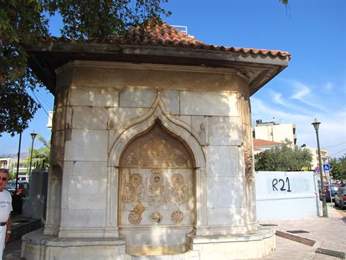 Adadaki Müslüman nüfusun ileri gelenlerinden Mehmet Melek Paşa tarafından 1768 yılında yaptırılan çeşme, Dimotikos Kipos (Halk Bahçesi) ‘un hemen karşısında yer almaktadır. Günümüzde ana cadde ile tali caddenin ortasında yer alan çeşmenin üzerinde 18.yy.la tarihlenen çok sayıda Osmanlıca metin mevcuttur.